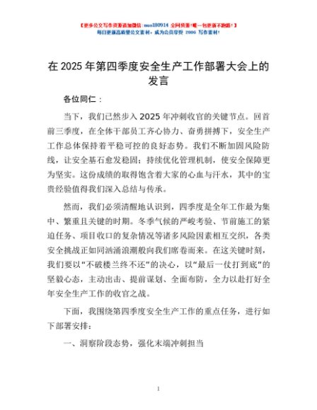 / 在2025年第四季度安全生产工作部署大会上的发言