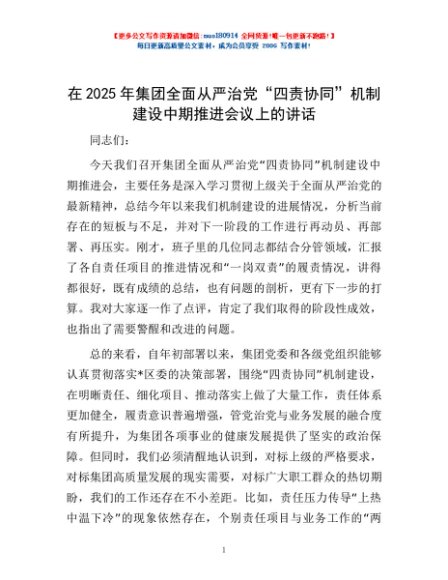 / 在2025年集团全面从严治党“四责协同”机制建设中期推进会议上的讲话