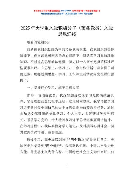 / 2025年大学生入党积极分子(预备党员)入党思想汇报