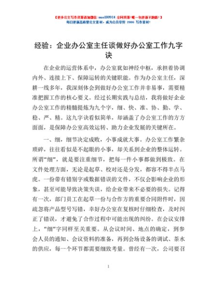 / 经验:企业办公室主任谈做好办公室工作九字诀