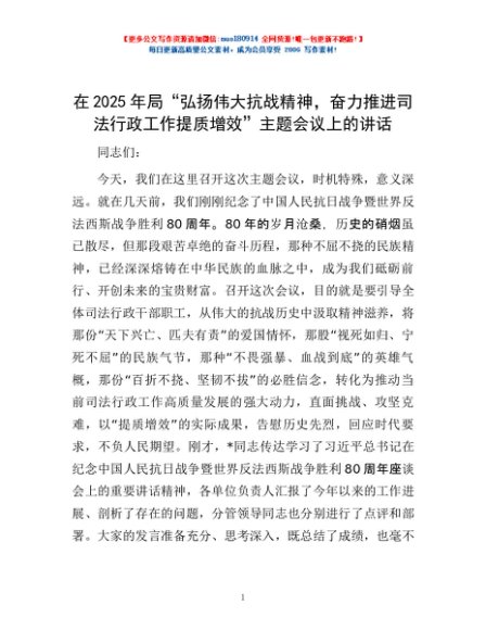 / 在2025年局“弘扬伟大抗战精神,奋力推进司法行政工作提质增效”主题会议上的讲话
