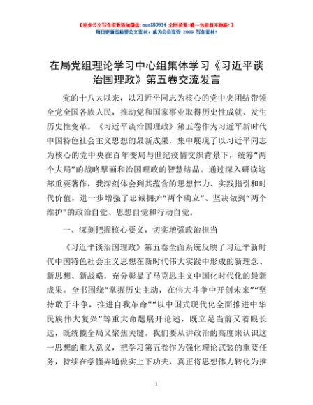 / 在局党组理论学习中心组集体学习《习近平谈治国理政》第五卷交流发言