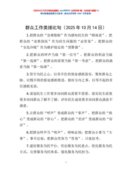 / 群众工作类排比句(2025年10月14日)