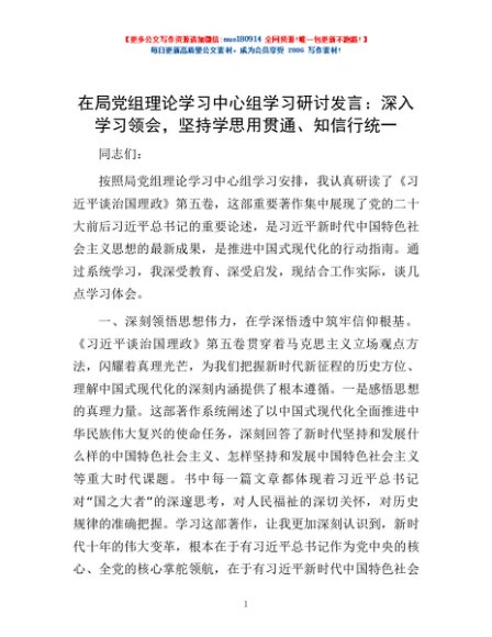 / 在局党组理论学习中心组学习研讨发言:深入学习领会,坚持学思用贯通、知信行统一