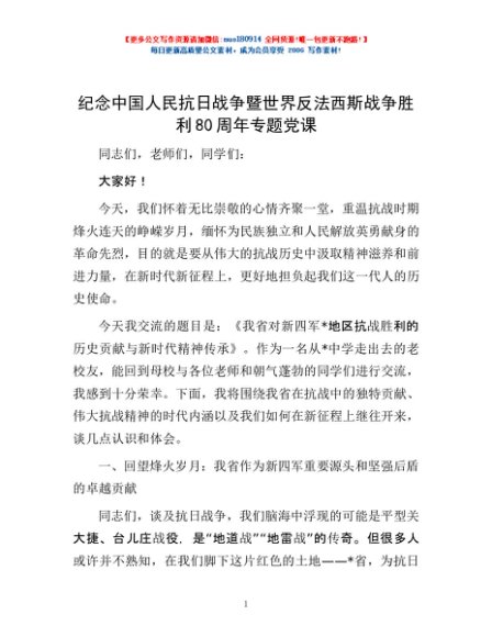 纪念中国人民抗日战争暨世界反法西斯战争胜利80周年专题党课