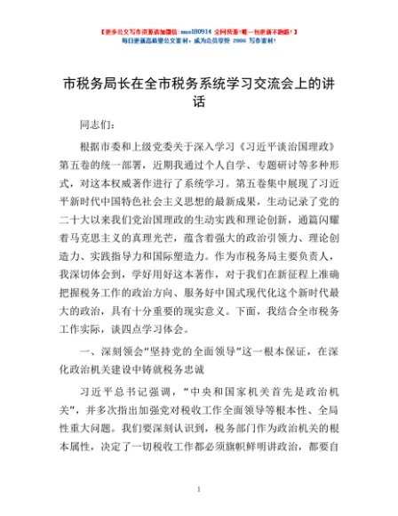 / 市税务局长在全市税务系统学习交流会上的讲话