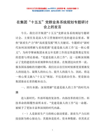 / 在集团“十五五”党群业务系统规划专题研讨会上的发言