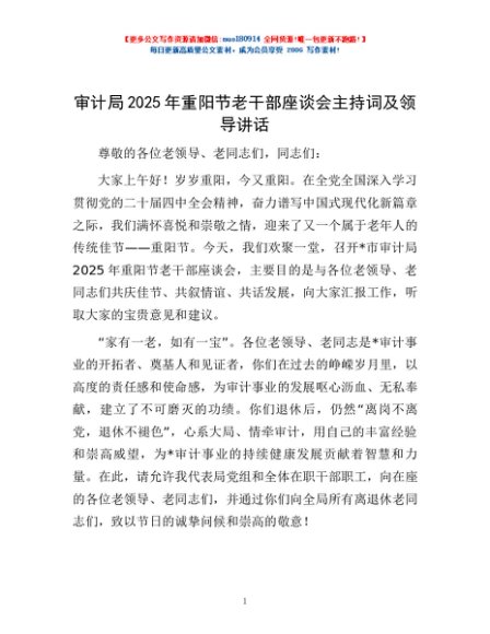 / 审计局2025年重阳节老干部座谈会主持词及领导讲话