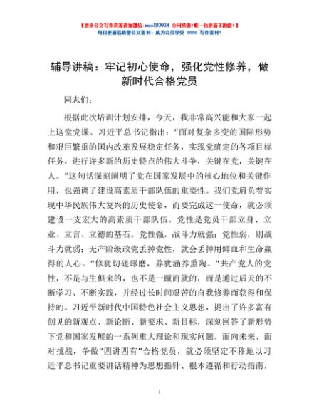 辅导讲稿:牢记初心使命,强化党性修养,做新时代合格党员