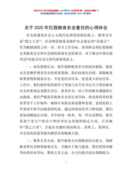 / 关于2025年扛稳粮食安全重任的心得体会