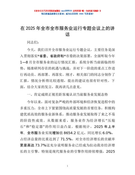 / 在2025年全市全市服务业运行专题会议上的讲话