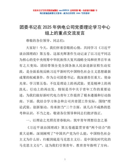 / 团委书记在2025年供电公司党委理论学习中心组上的重点交流发言