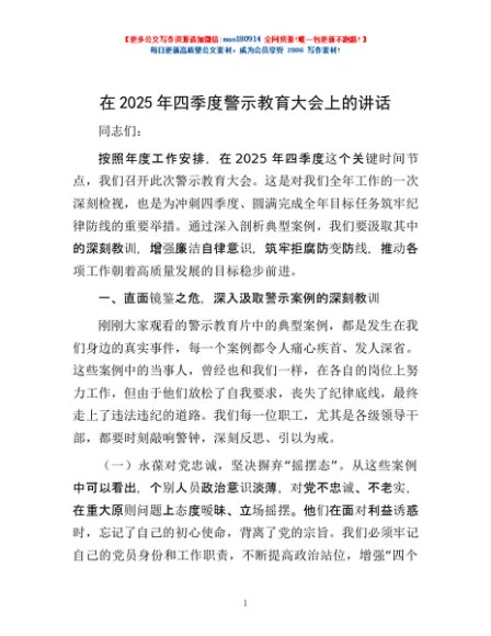 / 在2025年四季度警示教育大会上的讲话