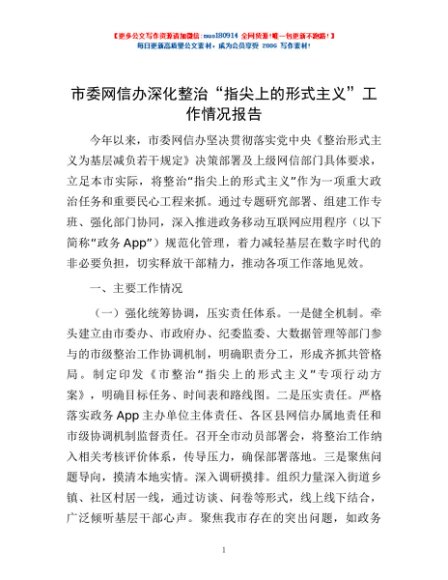 / 市委网信办深化整治“指尖上的形式主义”工作情况报告