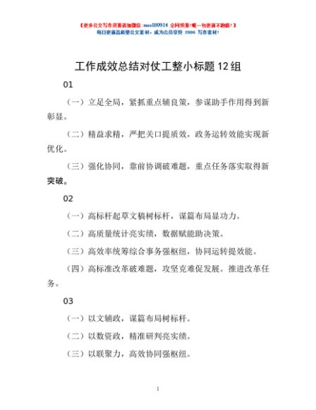 / 工作成效总结对仗工整小标题12组