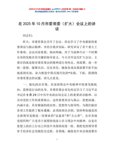 / 在2025年10月市委常委(扩大)会议上的讲话