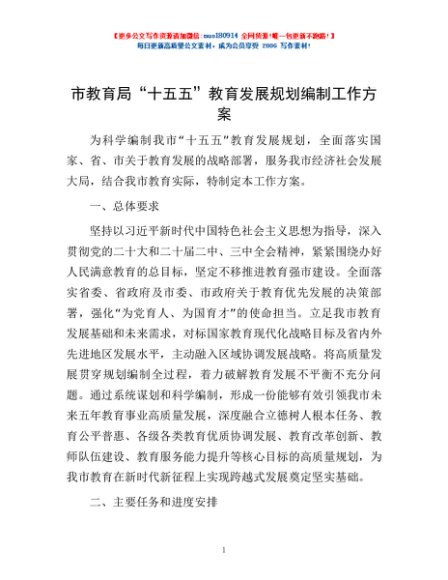 / 市教育局“十五五”教育发展规划编制工作方案