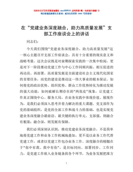 / 在“党建业务深度融合,助力高质量发展”支部工作座谈会上的讲话