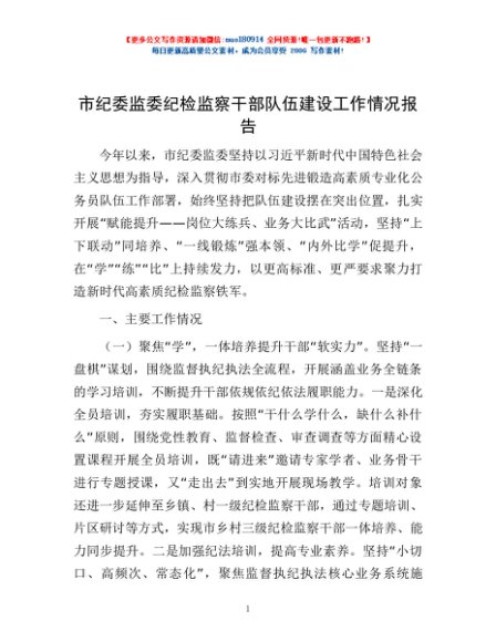 / 市纪委监委纪检监察干部队伍建设工作情况报告