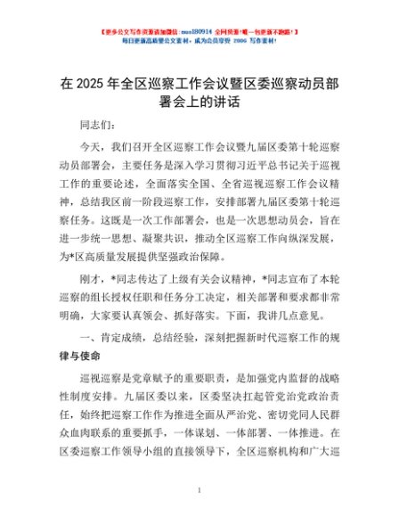 / 在2025年全区巡察工作会议暨区委巡察动员部署会上的讲话