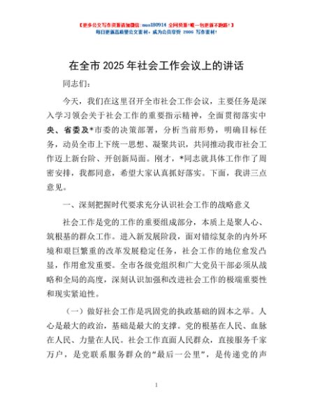 / 在全市2025年社会工作会议上的讲话