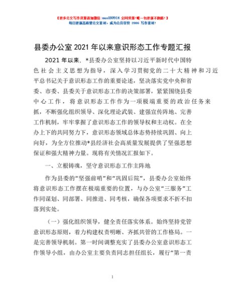 / 县委办公室2021年以来意识形态工作专题汇报