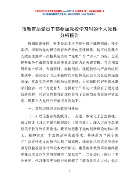 / 市教育局党员干部参加党校学习时的个人党性分析报告