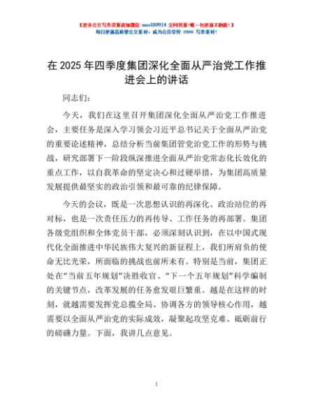 / 在2025年四季度集团深化全面从严治党工作推进会上的讲话