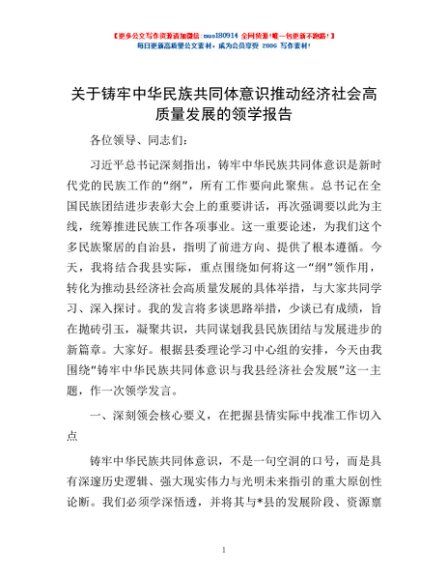 / 关于铸牢中华民族共同体意识推动经济社会高质量发展的领学报告