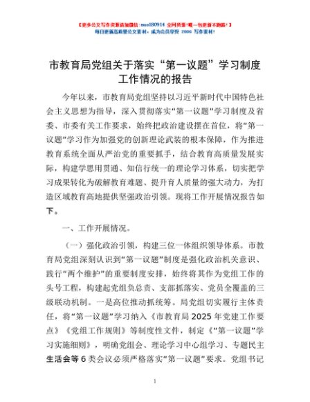 / 市教育局党组关于落实“第一议题”学习制度工作情况的报告