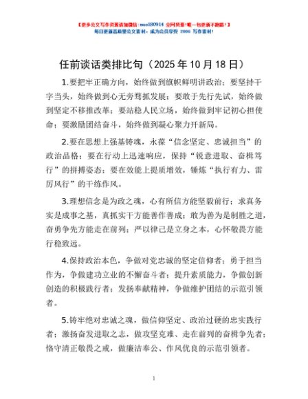 / 任前谈话类排比句(2025年10月18日)