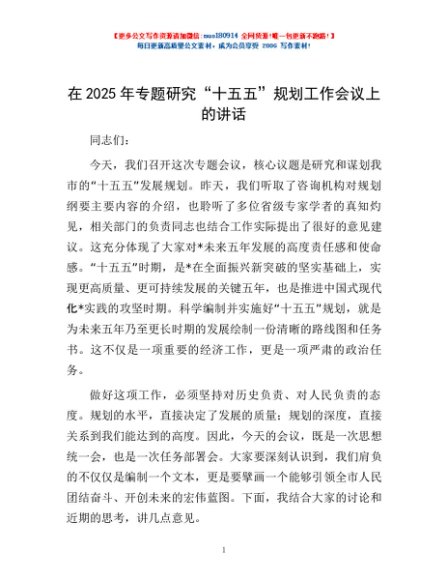 / 在2025年专题研究“十五五”规划工作会议上的讲话