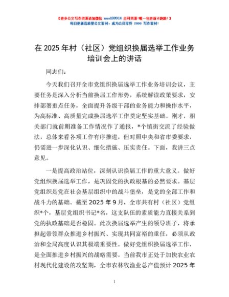 / 在2025年村(社区)党组织换届选举工作业务培训会上的讲话