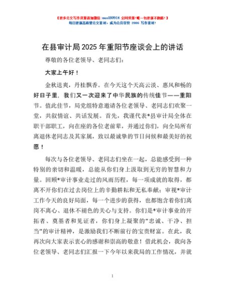 / 在县审计局2025年重阳节座谈会上的讲话