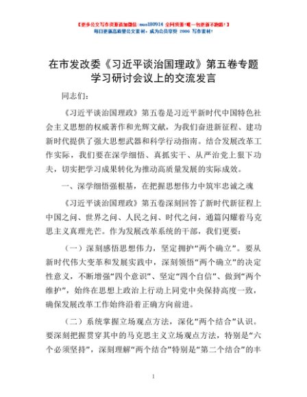 / 在市发改委《习近平谈治国理政》第五卷专题学习研讨会议上的交流发言