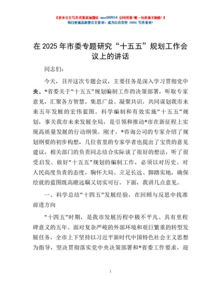 / 在2025年市委专题研究“十五五”规划工作会议上的讲话