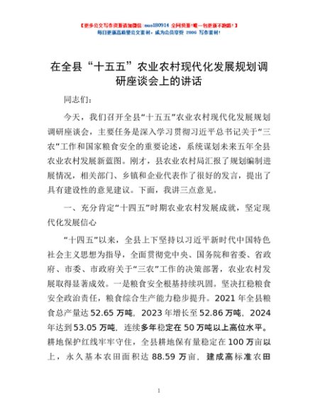 / 在全县“十五五”农业农村现代化发展规划调研座谈会上的讲话