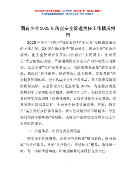 / 国有企业2025年落实安全管理责任工作情况报告