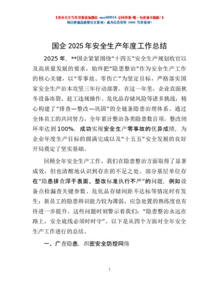 / 国企2025年安全生产年度工作总结