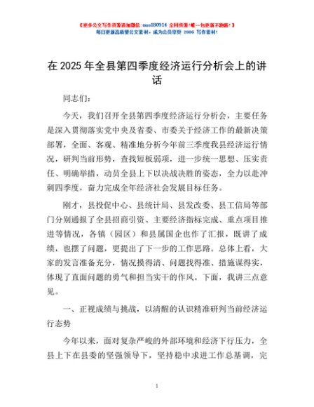 / 在2025年全县第四季度经济运行分析会上的讲话