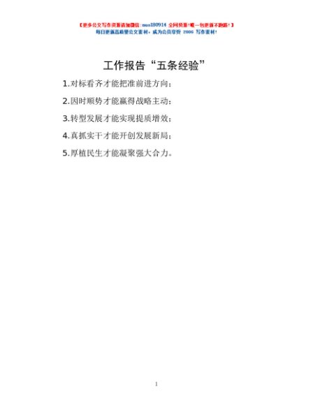 工作报告“五条经验”