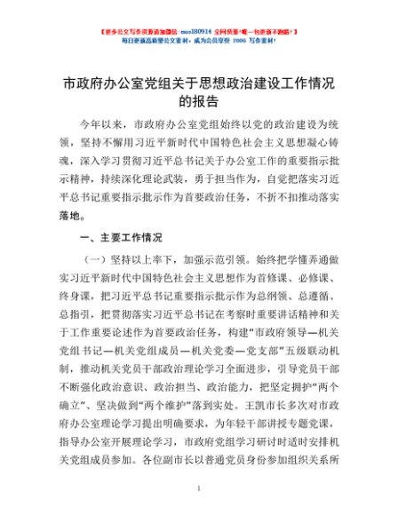 / 市政府办公室党组关于思想政治建设工作情况的报告