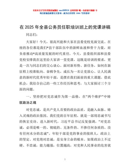 / 在2025年全县公务员任职培训班上的党课讲稿
