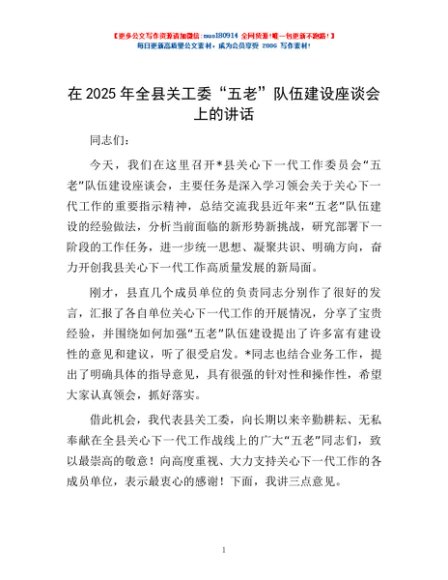 / 在2025年全县关工委“五老”队伍建设座谈会上的讲话