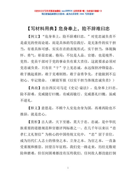 / 【写材料用典】危身奉上,险不辞难曰忠