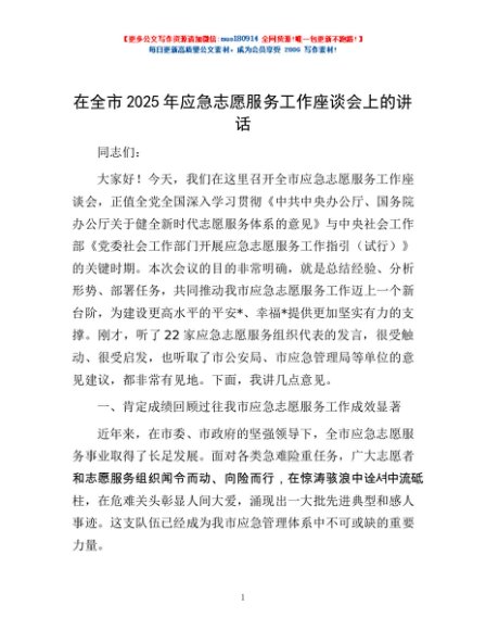 / 在全市2025年应急志愿服务工作座谈会上的讲话