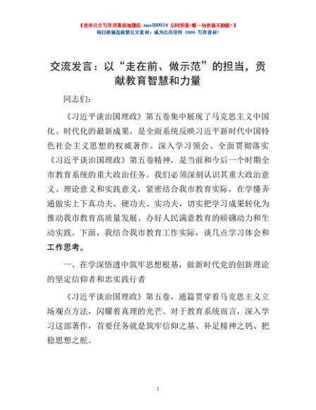 交流发言:以“走在前、做示范”的担当,贡献教育智慧和力量