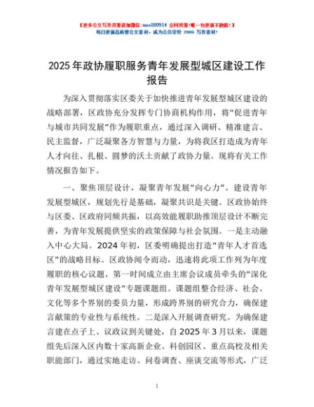 / 2025年政协履职服务青年发展型城区建设工作报告