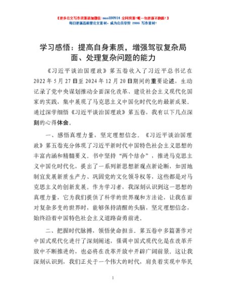 / 学习感悟:提高自身素质,增强驾驭复杂局面、处理复杂问题的能力