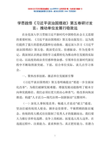 学思践悟《习近平谈治国理政》第五卷研讨发言:推动单位发展行稳致远